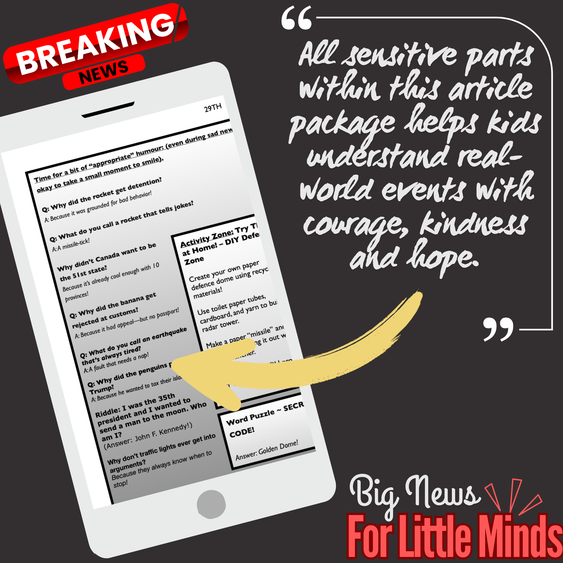 Explore the idea of a high-tech “Golden Dome” shield over the U.S. with this real-world article package designed for curious kids aged 8+. This resource simplifies a complex current event into an engaging, educational read with classroom-friendly vocabulary, clear visuals, and thoughtful discussion prompts. Students will develop critical thinking, comprehension and global awareness—all while having fun. Bonus Freebie worksheets x2 are included!