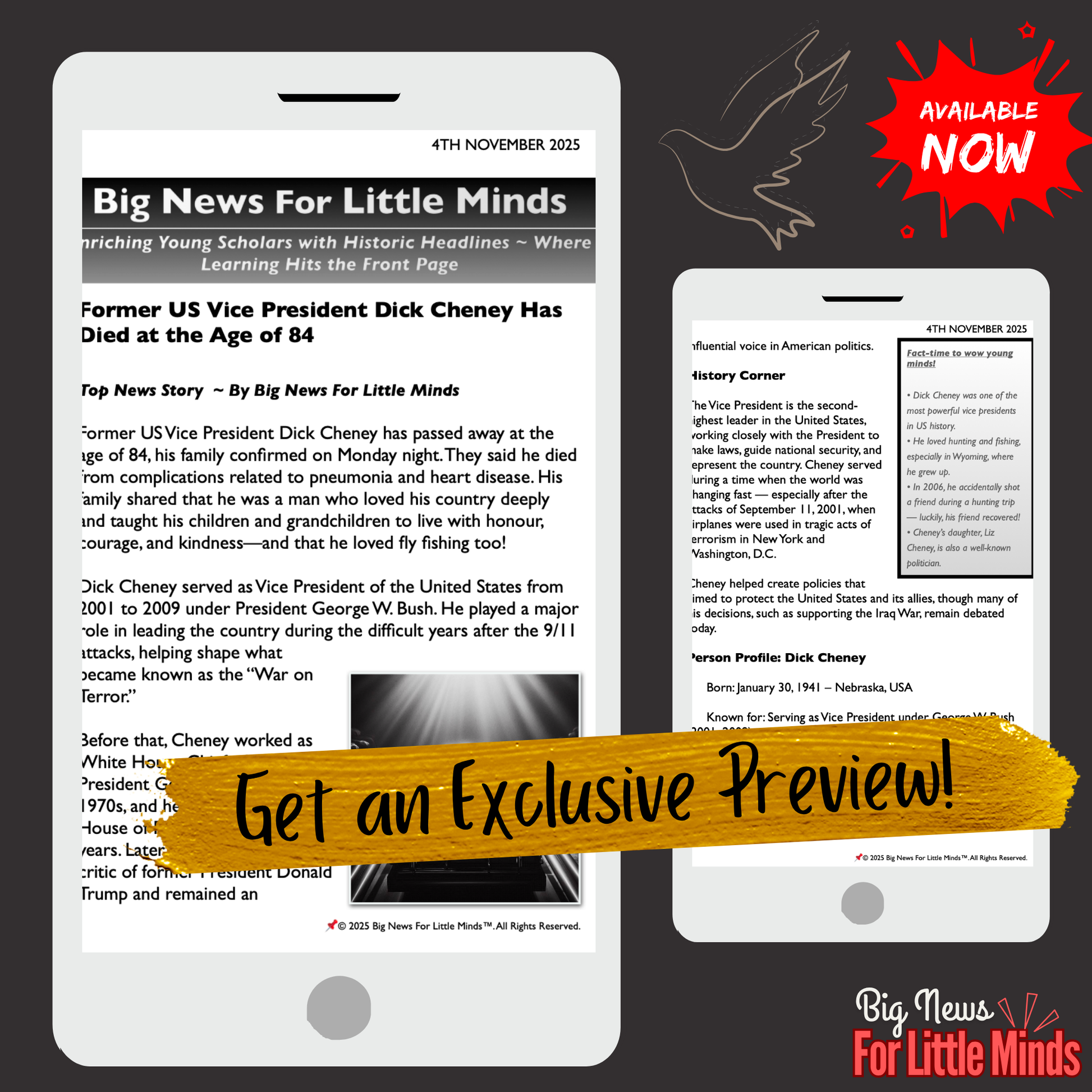 Former US Vice President Dick Cheney Passes Away at 84: Kids Article Pack & More!