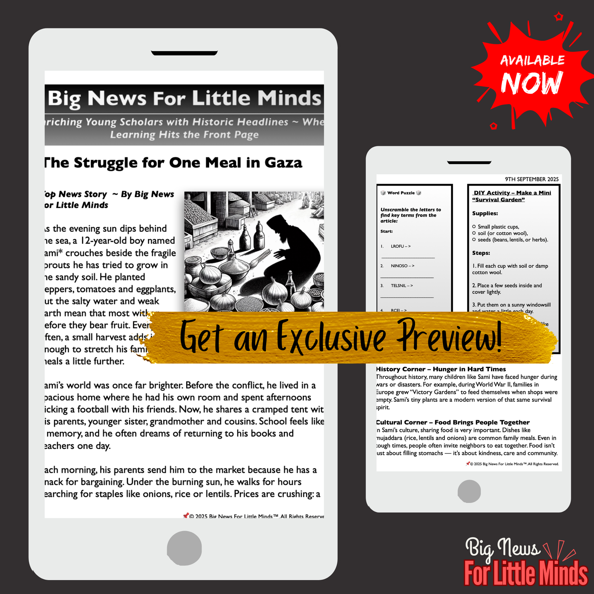 At Big News For Little Minds, our mission is to inspire young learners with captivating stories and exciting facts. Designed for curious kids aged 7 and up, our resource-packed publication brings current events for kids, US news for students, and historical moments to life in a fun and interactive way.