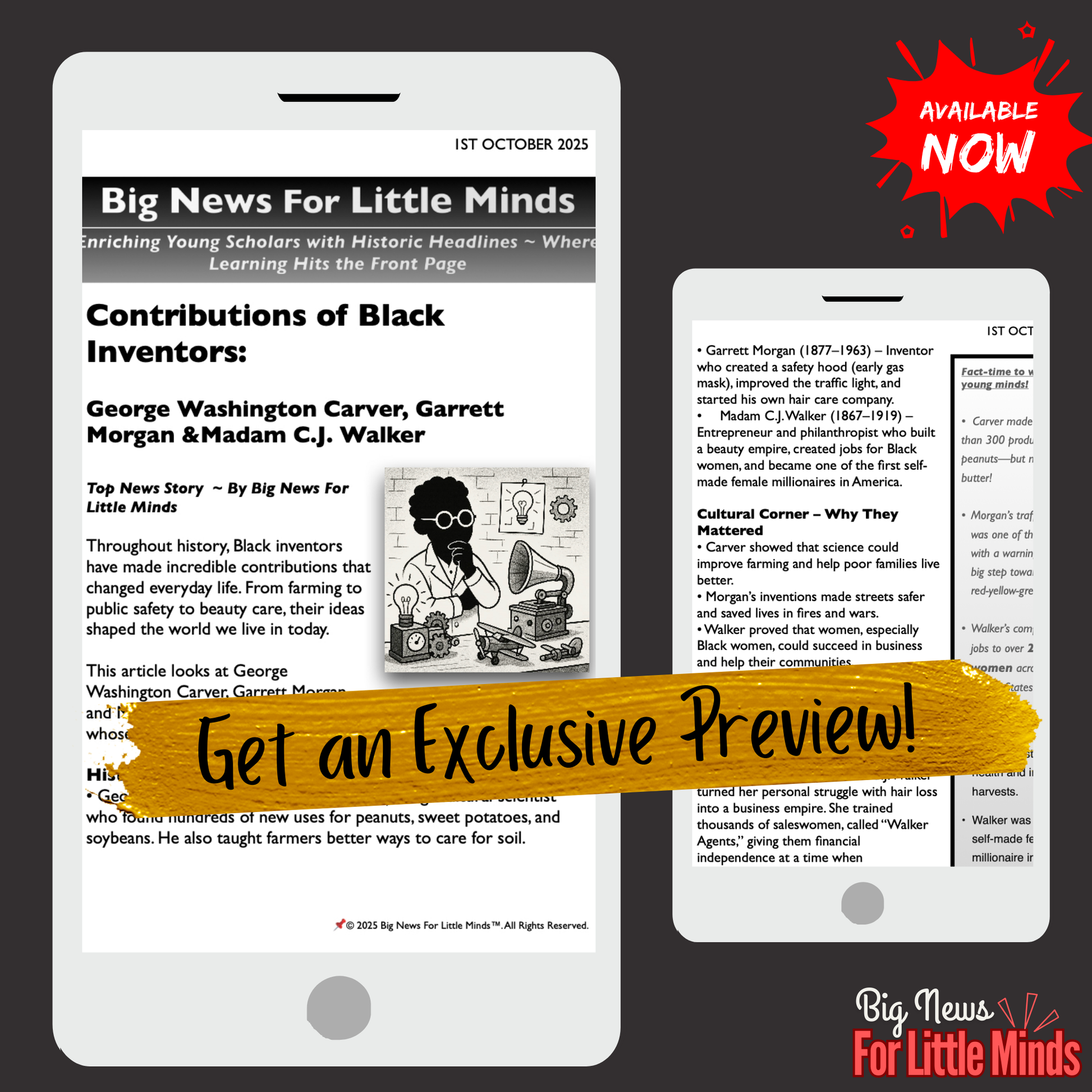 At Big News For Little Minds, our mission is to inspire young learners with captivating stories and exciting facts. Designed for curious kids aged 7 and up, our resource-packed publication brings current events for kids, US news for students, and historical moments to life in a fun and interactive way.