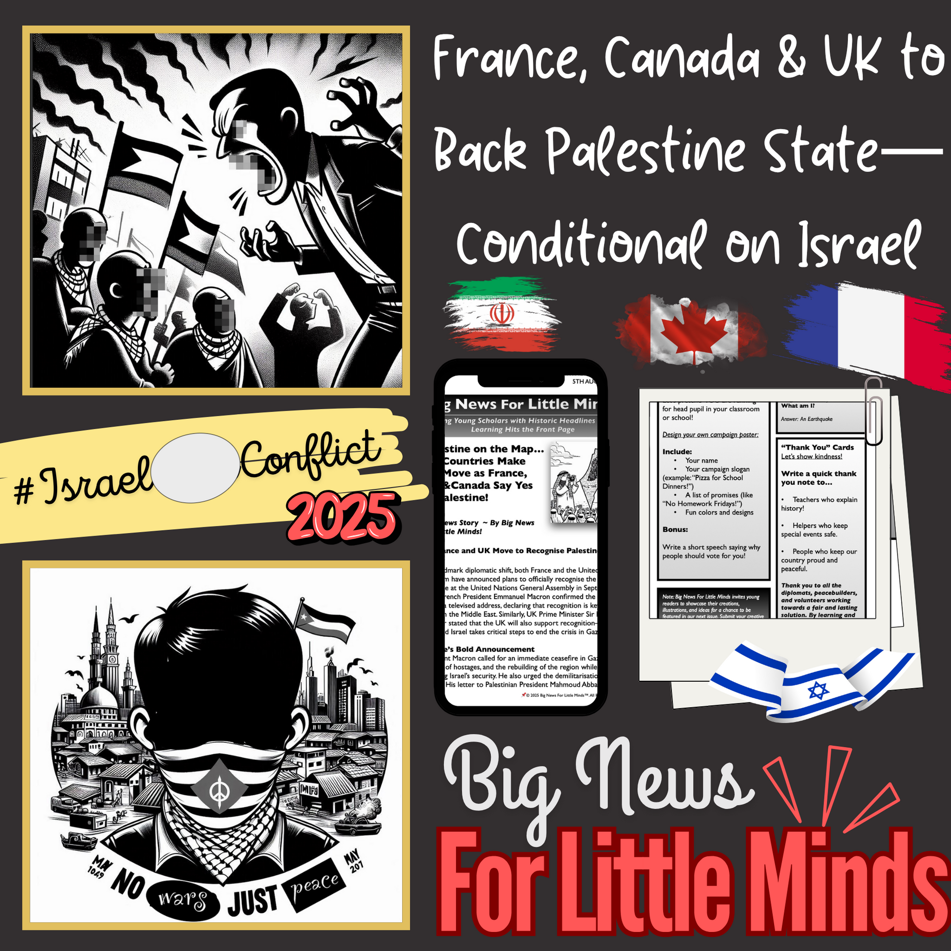 Palestine Recognition by France, UK & Canada + USA's Stance! Kids' Article Pack
