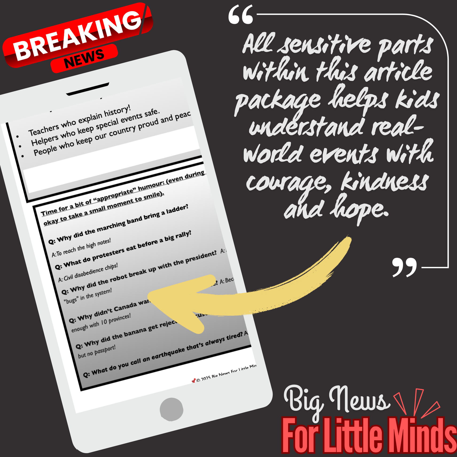 • Joke Time — Includes age-appropriate humor to lighten serious topics, and includes other jokes based on current events too!