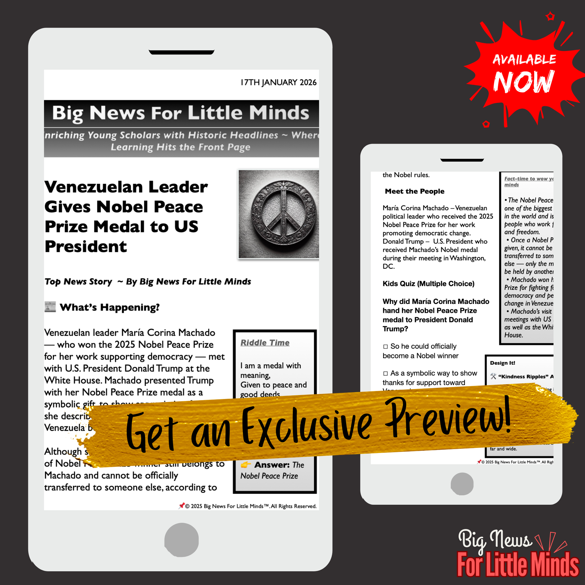 Our mission is to inspire young learners with captivating stories and fascinating facts. Designed for curious kids aged 7 and up, our resource-packed publications bring current events and historical moments to life in a fun, interactive way.