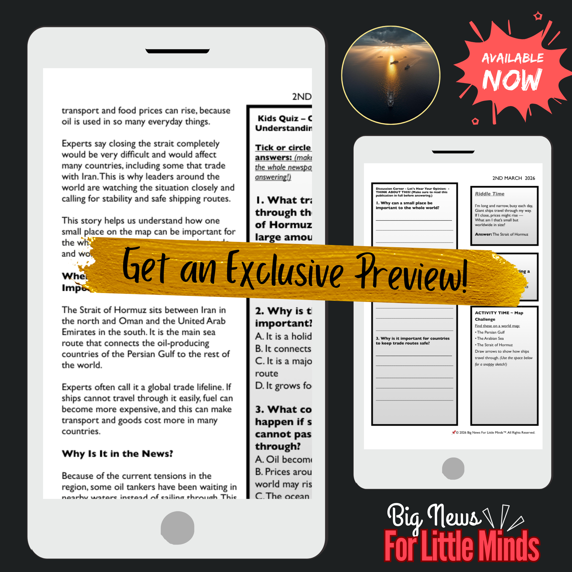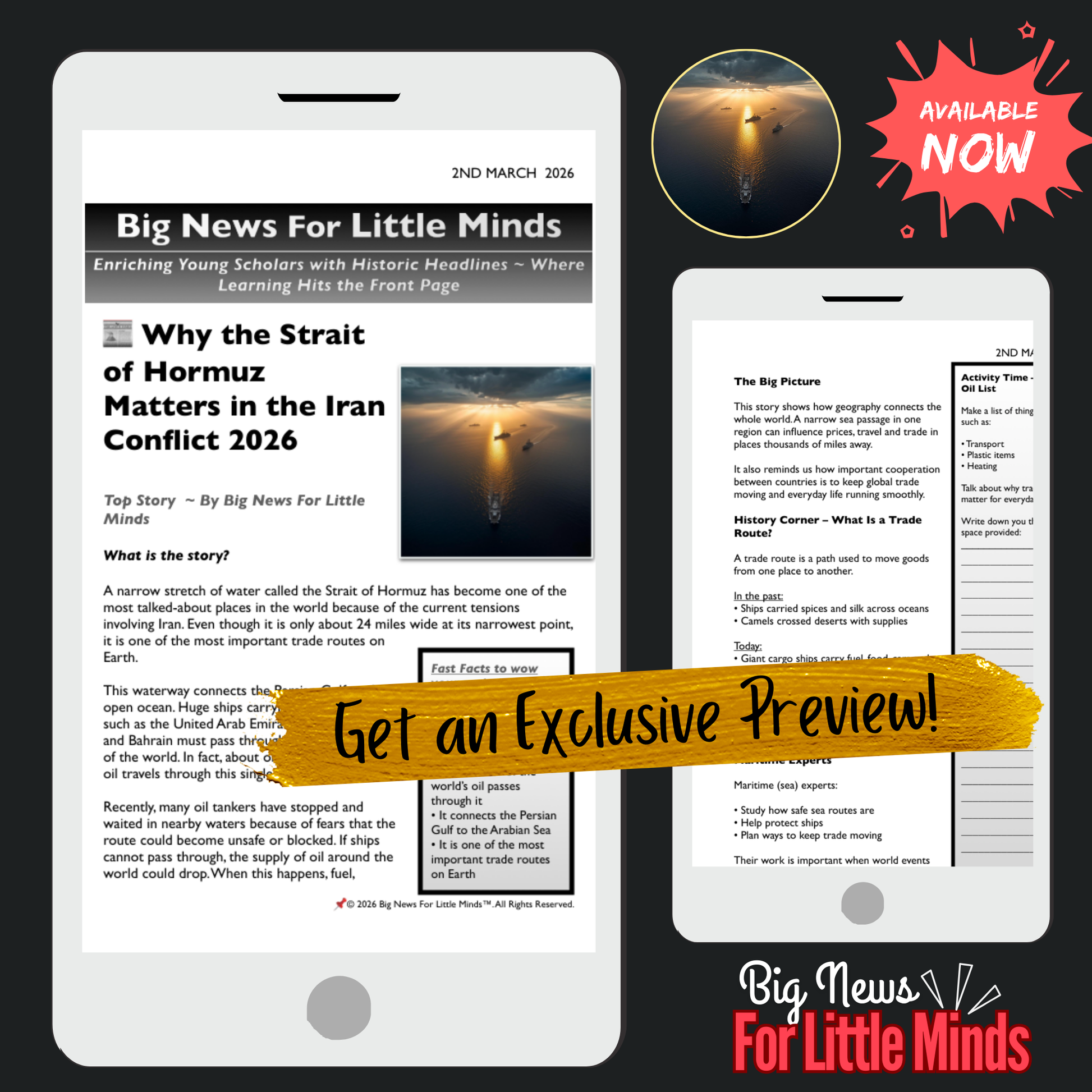 Our mission is to inspire young learners with captivating stories and fascinating facts. Designed for curious kids aged 7 and up, our resource-packed publications bring current events and historical moments to life in a fun, interactive way.